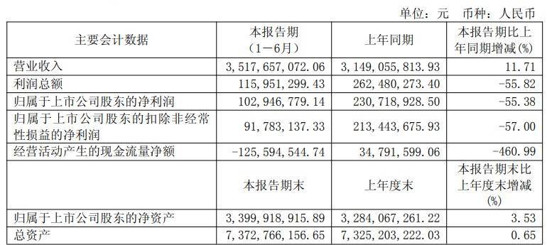 今年上半年,风神股份实现营收35.18亿元,同比增长11.71%;归母净利润1.16亿元,同比下降55.82%。